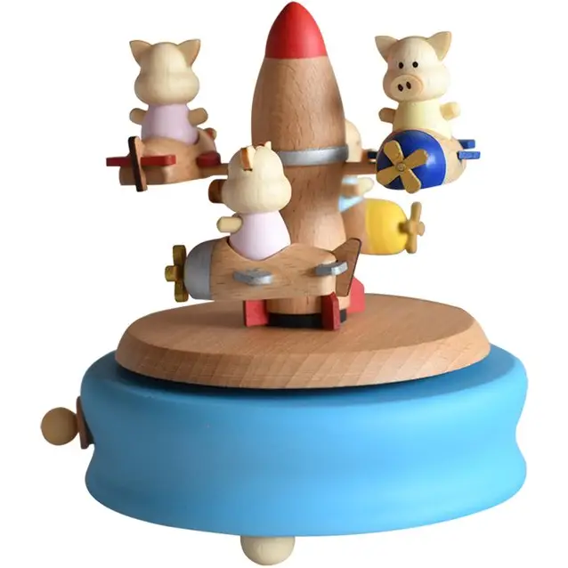 Caixa de Música de Madeira Porquinho Voador