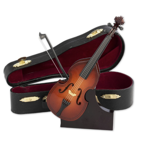 O contrabaixo miniatura é uma versão em escala reduzida do instrumento real, criadas com grande atenção ao detalhe e muito usadas tanto para decoração como para coleção