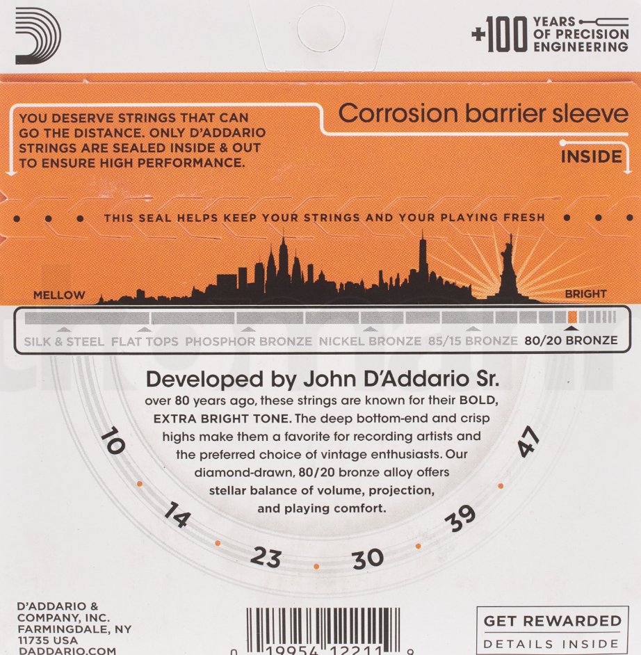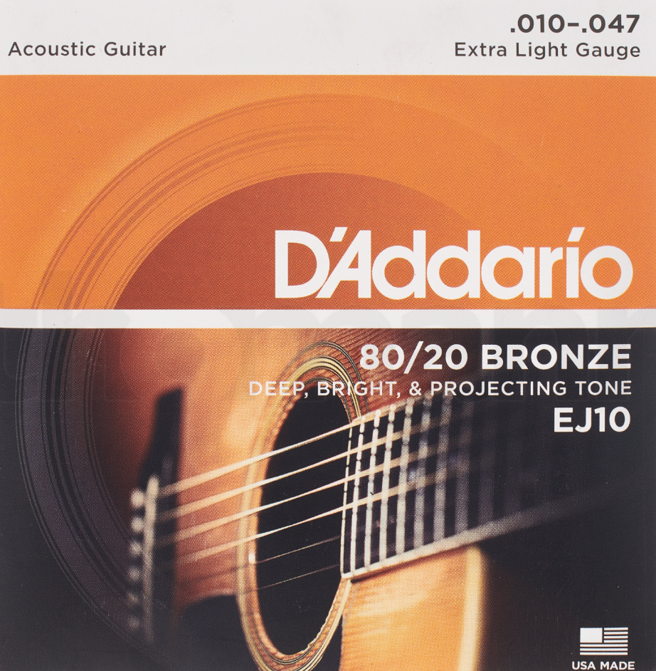 D’Addario EJ10 Extra Light é um jogo de cordas para guitarra acústica com calibre extra light de .010–.047 o mais leve que a D’Addario fabrica para guitarras acústicas.