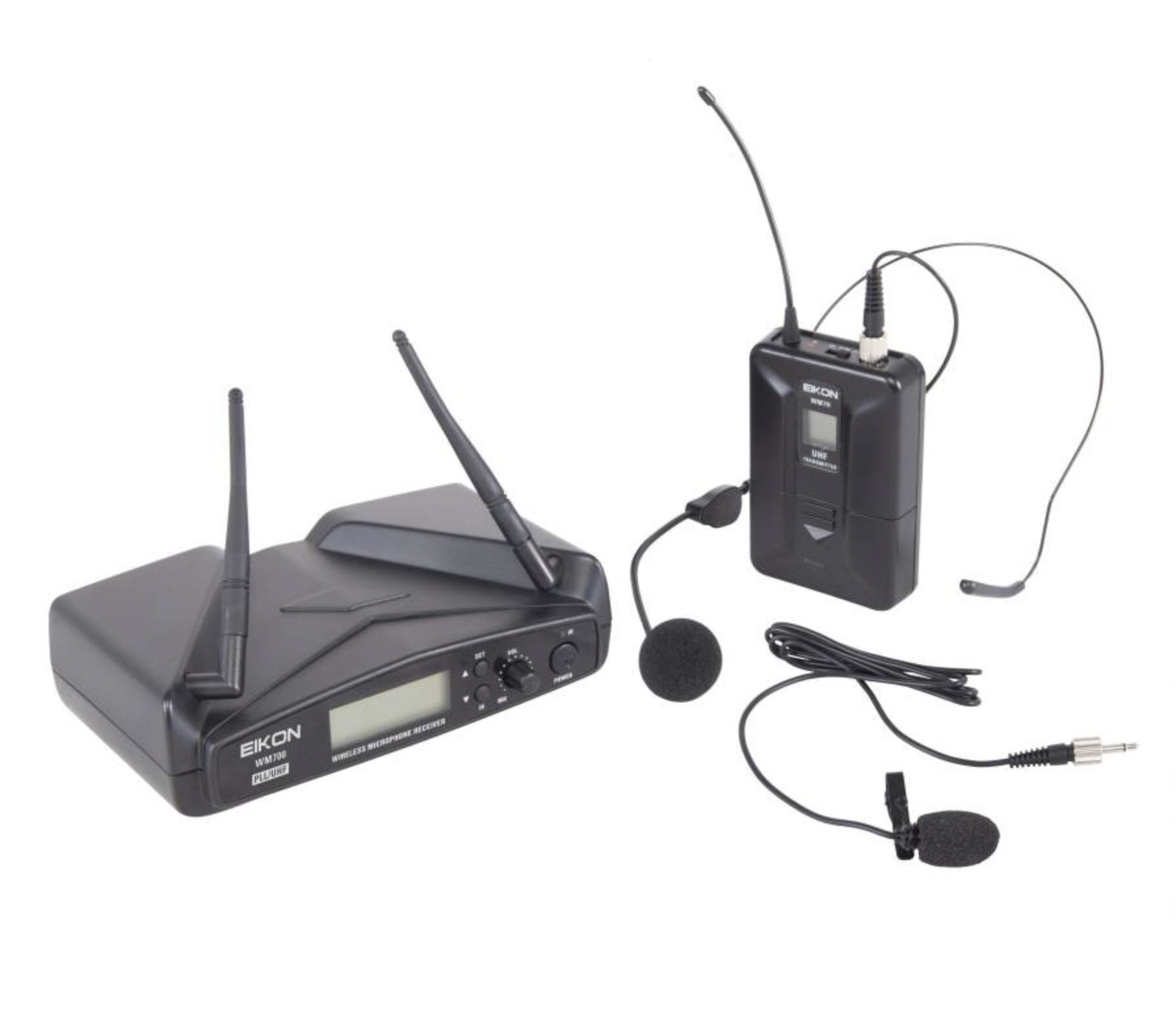 O sistema de microfone sem fios WM700 oferece 5 combinações diferentes com recetor de canal simples, recetor de dois canais, transmissor de mãos e transmissor de bodypack com headset.