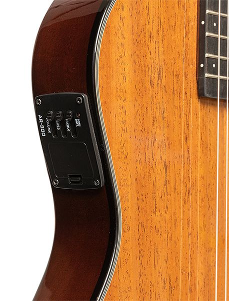 Eletrónica: Pre-amplificador AR300 com volume, equalizador de duas bandas, volume e indicador de bateria fraca.