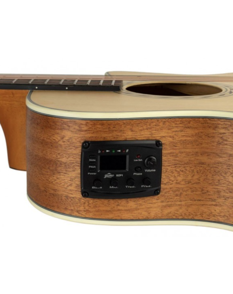 O tampo em abeto proporciona um som brilhante e articulado, enquanto o mogno nas costas e laterais adiciona calor e profundidade ao timbre. O formato Grand Auditorium oferece versatilidade, sendo adequado tanto para dedilhados quanto para acordes. O pré-amplificador Bromo BZP1 permite ajustes tonais precisos, tornando-a ideal para atuações ao vivo.