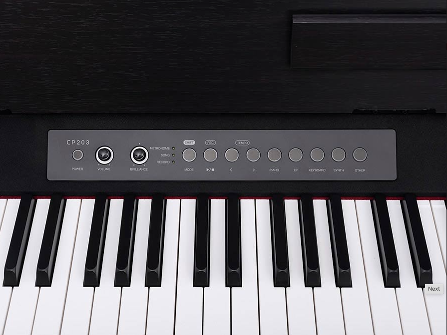 O Medeli CP203 é um piano digital teclado completo de 88 teclas com ação de martelo compacta (GAC), pensado para uso doméstico, aulas e estúdios.