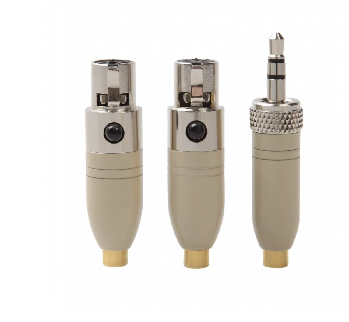 Equipado com 3 adaptadores substituíveis diferentes, tornando-o adequado para uso com transmissores bodypack de diferentes fabricantes.