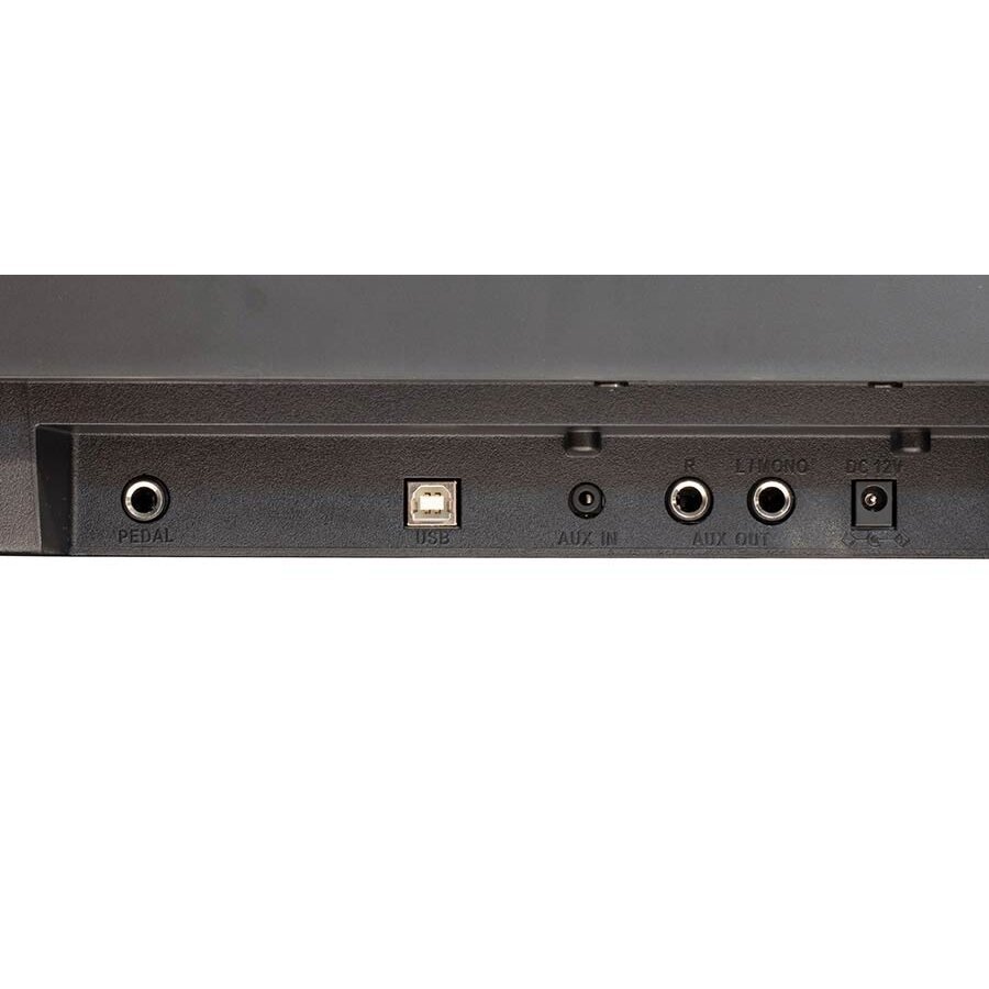 Conectividade: Bluetooth (áudio e MIDI), USB MIDI, entrada AUX, saídas LINE OUT (L/MONO, R), 2 saídas para auscultadores, entrada para pedal de sustain (incluído) e conetor para unidade de 3 pedais (opcional).