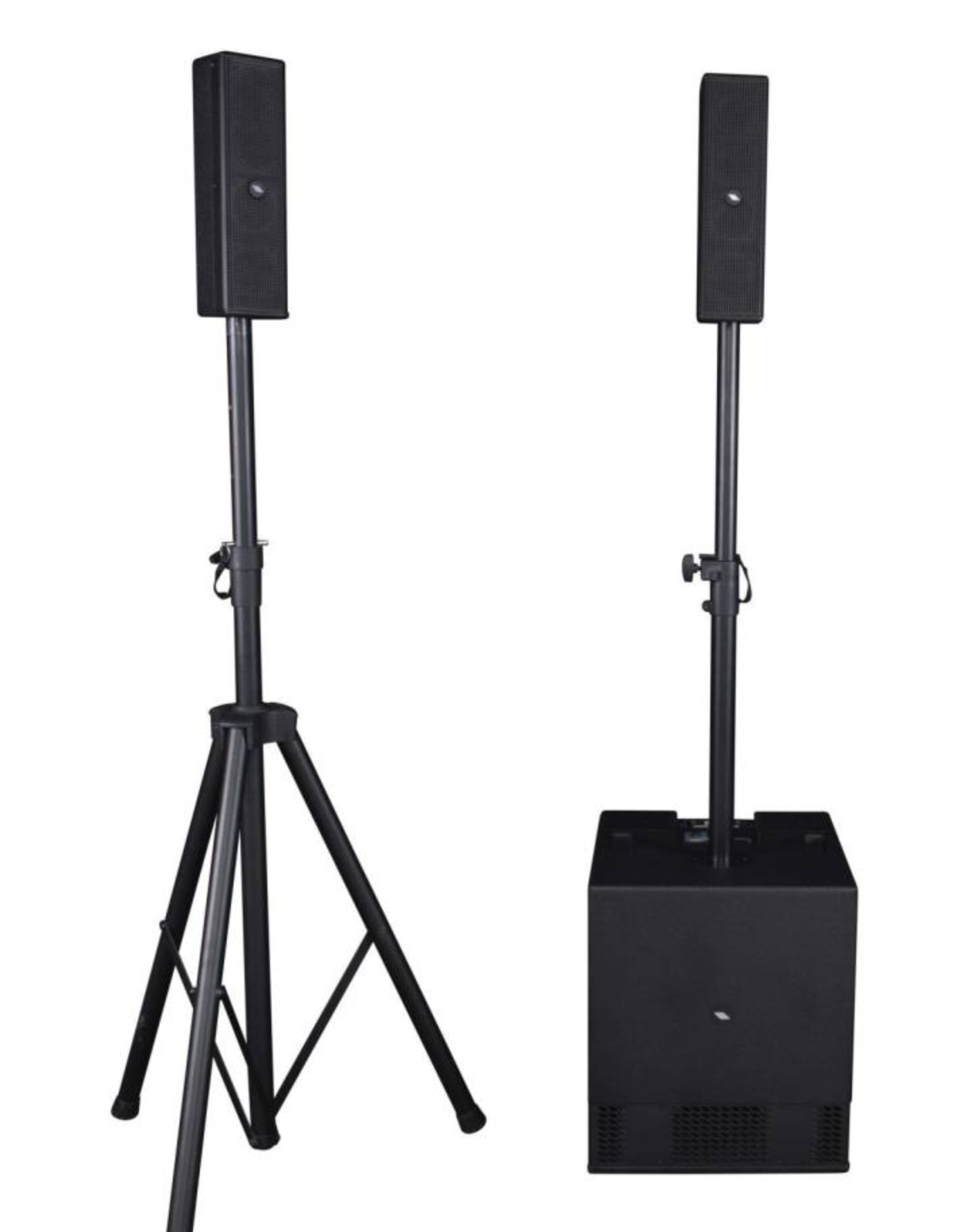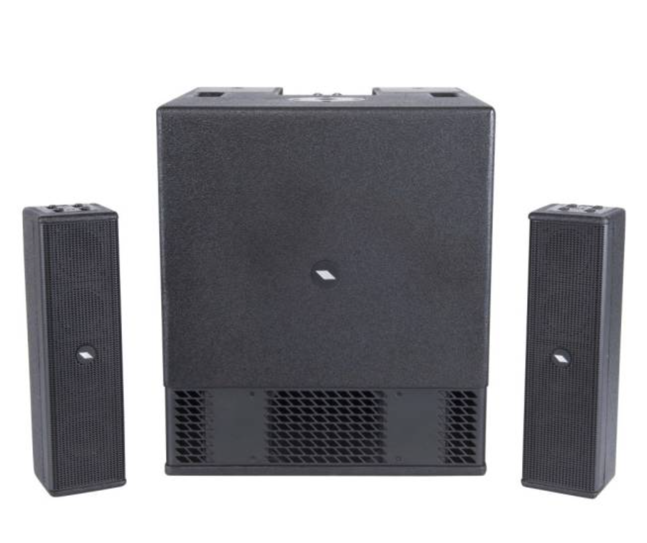 Tipo: Sistema portátil ativo 2.1 com dois tops em array vertical e um subwoofer