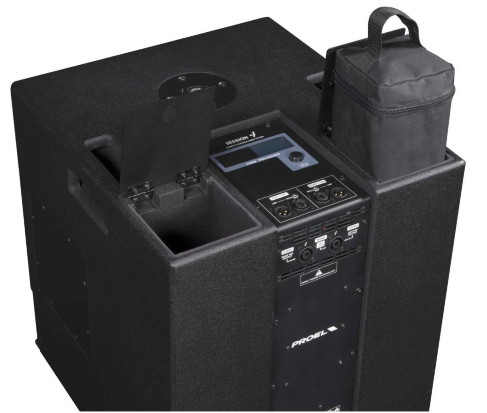 Proel Session 4 é um sistema de áudio portátil profissional em configuração ativa 2.1, composto por dois tops em array vertical e um subwoofer. Projetado para músicos solo, pequenos grupos ao vivo, DJs móveis e aplicações corporativas, combina flexibilidade, portabilidade e desempenho com um design robusto e construção em madeira compensada.