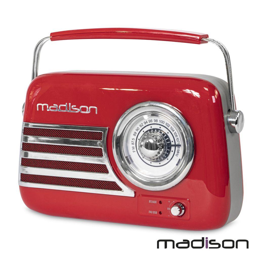 Descrição Geral - Rádio vintage portátil FM c/ Bluetooth - Ouça a sua música em qualquer lugar - Leitor multimédia c/ Bluetooth, FM, AUX e USB - Graves com grande qualidade - Carregamento via USB (cabo incluído) - Bateria recarregável de 1500mAh - Peso: 0.64 kg - Quantidade por caixa: 1 unidade
