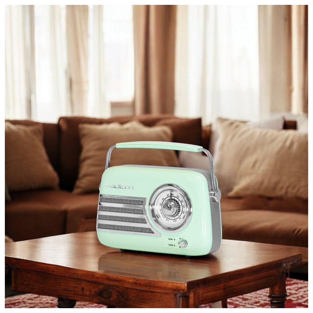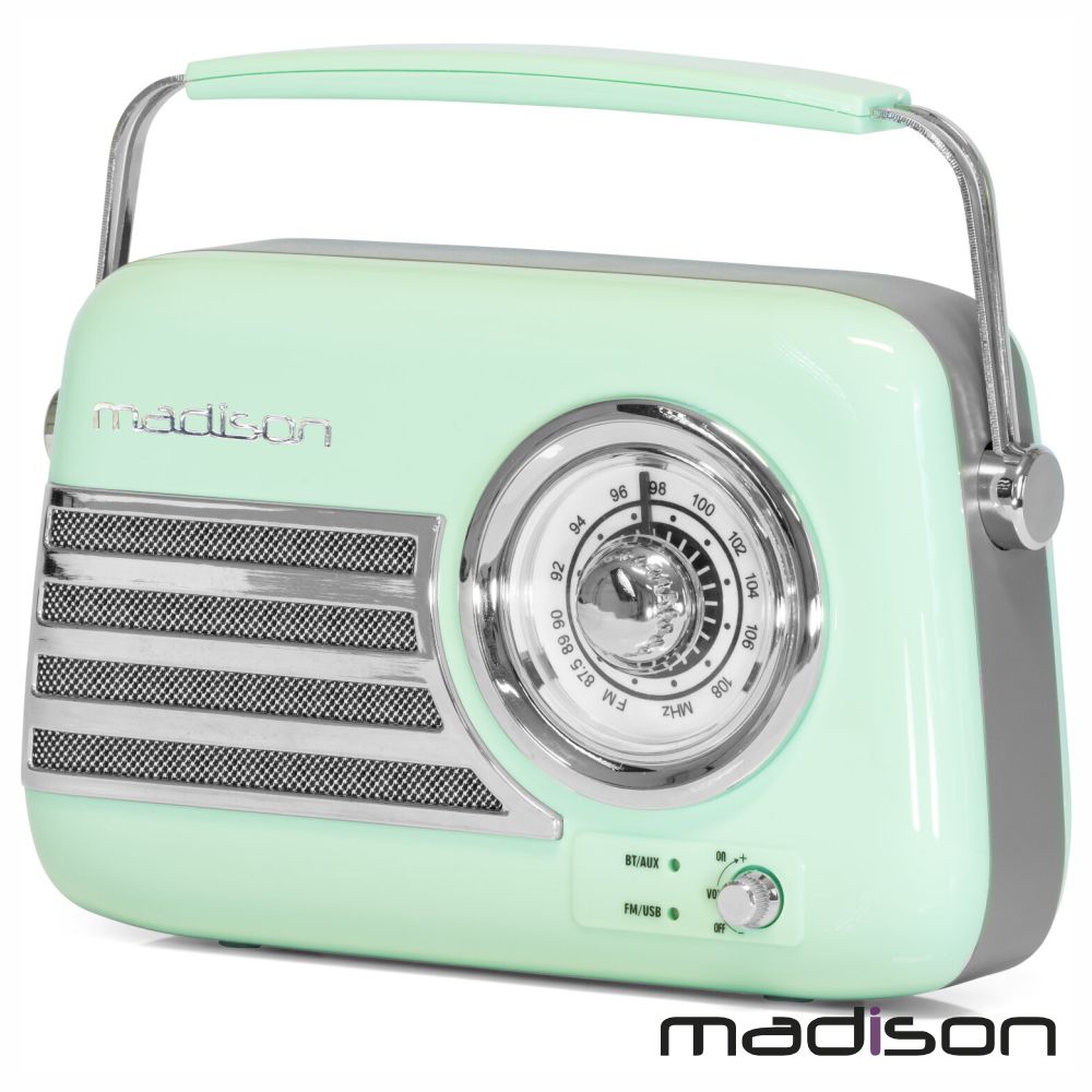 Descrição Geral - Rádio vintage portátil FM c/ Bluetooth - Ouça a sua música em qualquer lugar - Leitor multimédia c/ Bluetooth, FM, AUX e USB - Graves com grande qualidade - Carregamento via USB (cabo incluído) - Bateria recarregável de 1500mAh - Peso: 0.64 kg - Quantidade por caixa: 1 unidade