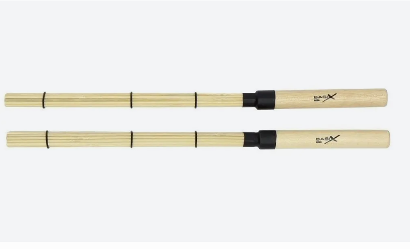 Baquetas para bateria / percussão feitas de bambu com cabo de madeira, usados por bateristas para tocar com som mais suave ou reduzido em comparação com baquetas normais.